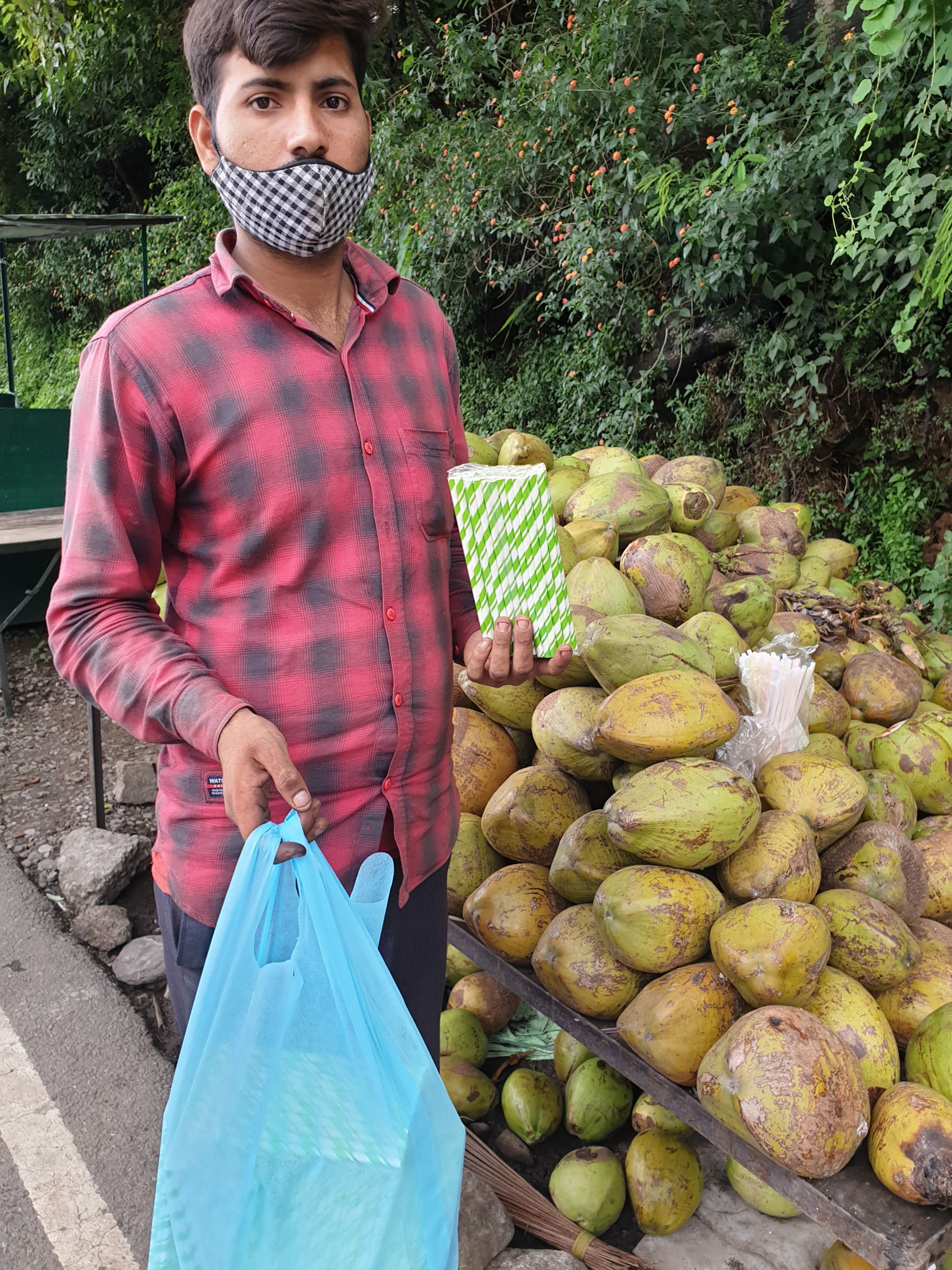 But on the spot, I had no other choice. But then something flicked in me. Nearby was a shop that sells disposable, bio-degradable daily-use items. So, I bought 10 packs of 50 paper straws each and handed them over to the coconut seller and told him to use them from now on and let me know when the stock expires, I will refill them.