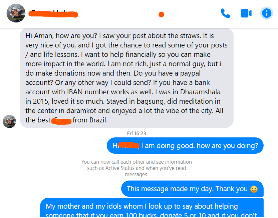One kind soul from Brazil went as far as to ask me my bank details where he could donate so that I could keep up the good work. He lived in Dharamshala 6 years ago and was so deeply touched during his sojourn in Dharamshala that he wanted to give something back to this place and its people.