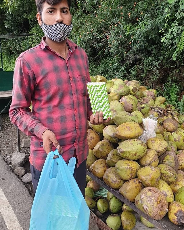 I also shared this incident on Instagram tagging Dharamshala Local, a page run by founders of Dhauladhar Cleaners, a local volunteering group, which I am a part of. They shared my post on their Instagram page with a huge following. There also many people came forward with suggestions and advice. One person updated us that the coconut seller was indeed using paper straws now.