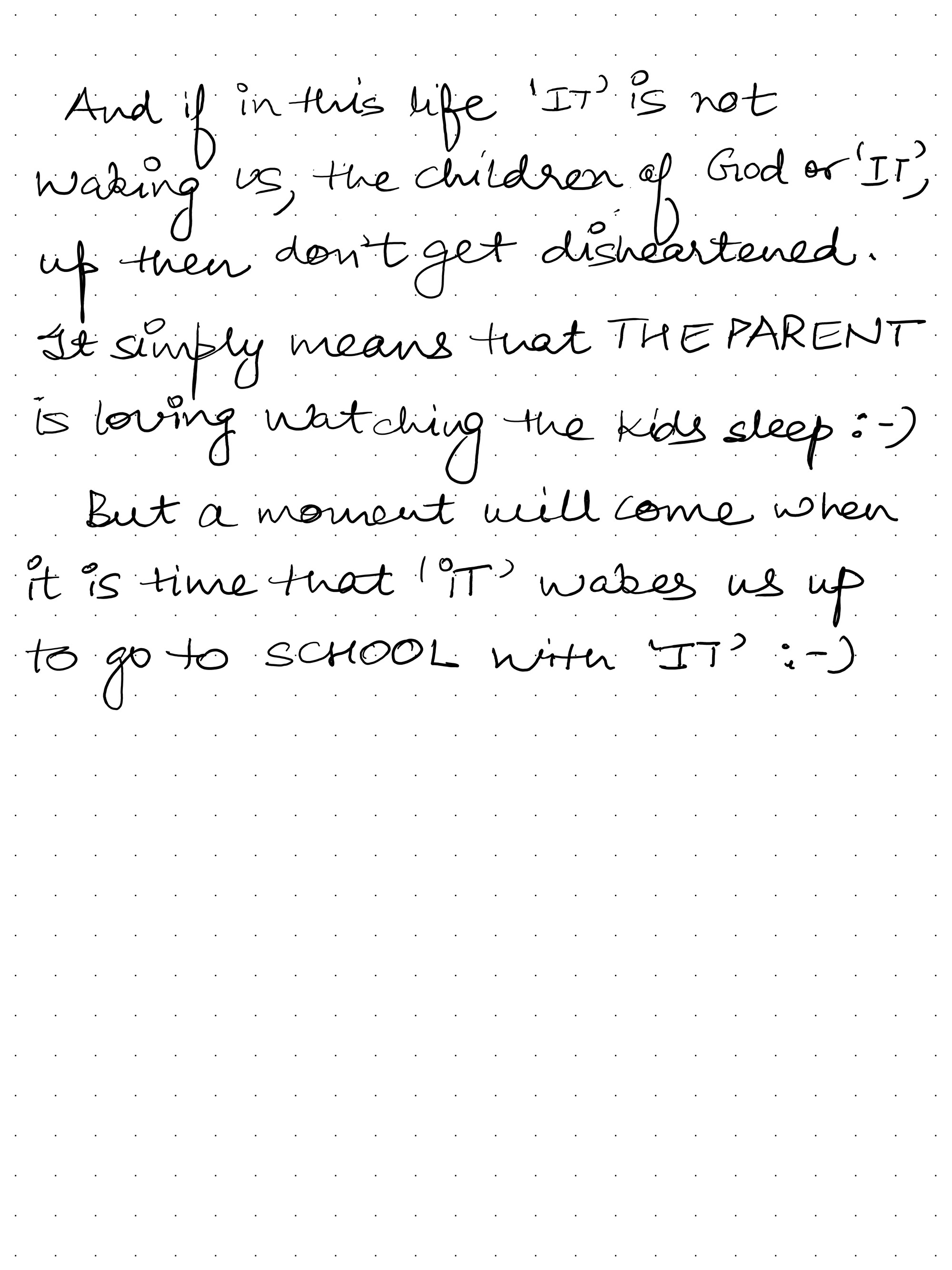 But a moment will come when it is time that ‘IT’ wakes us up to go to school with IT. 😄