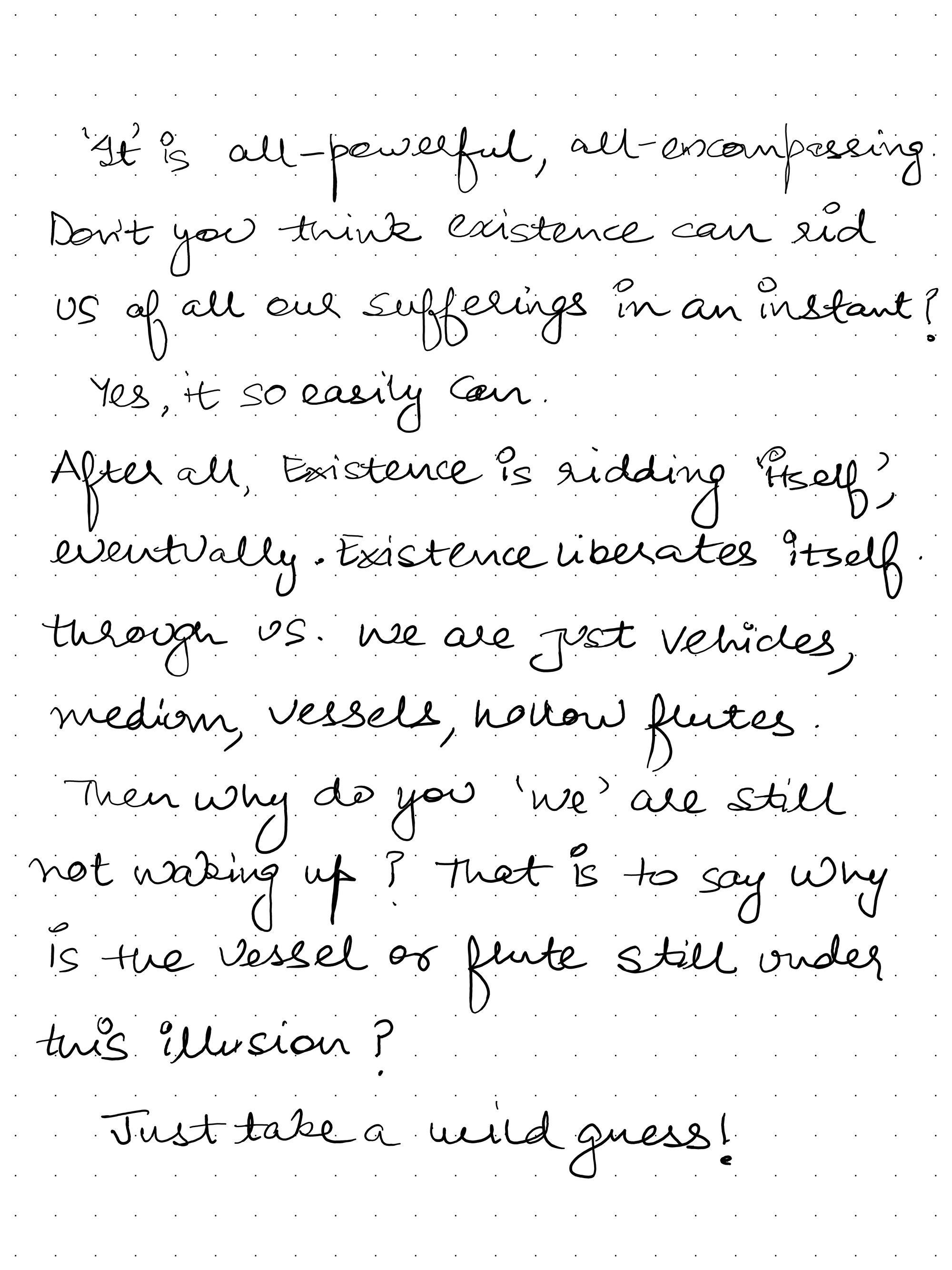 It is all-powerful, all-encompassing. Don’t you think existence can rid us of all our sufferings in an instant?