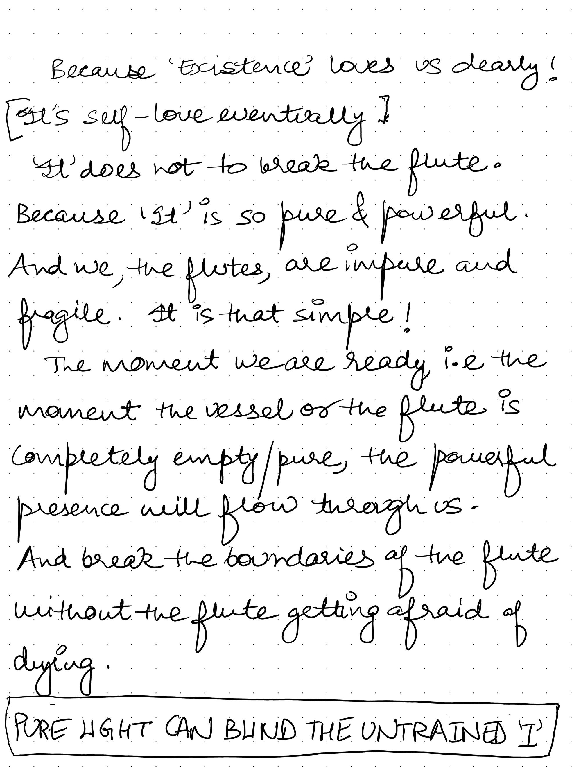 And break the boundaries of the flute without the flute getting afraid of dying.[Pure LIGHT can blind the untrained ‘I’]